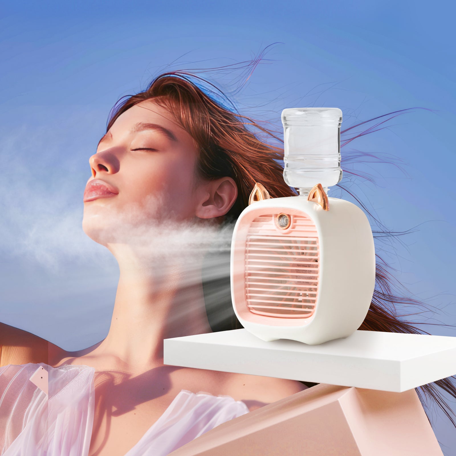 USB Misting Fan & Humidifier – Desktop Air Cooler with 3 Speeds