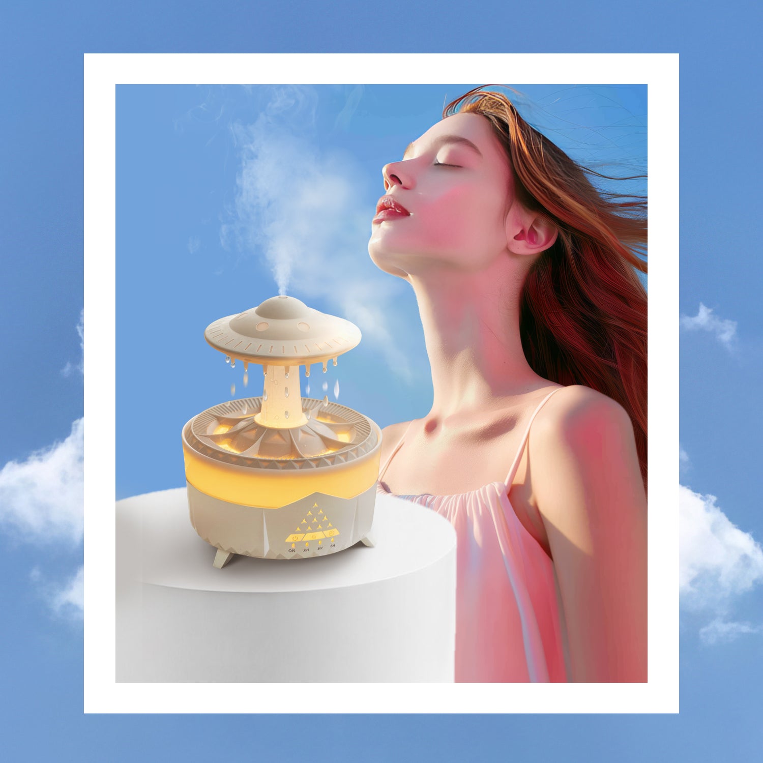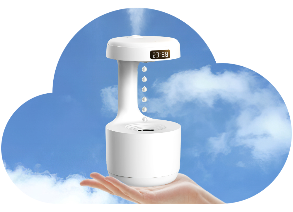 This adorable humidifier boasts a simple, modern design, offering relief from dryness while immersing you in the serenity of water drops.
