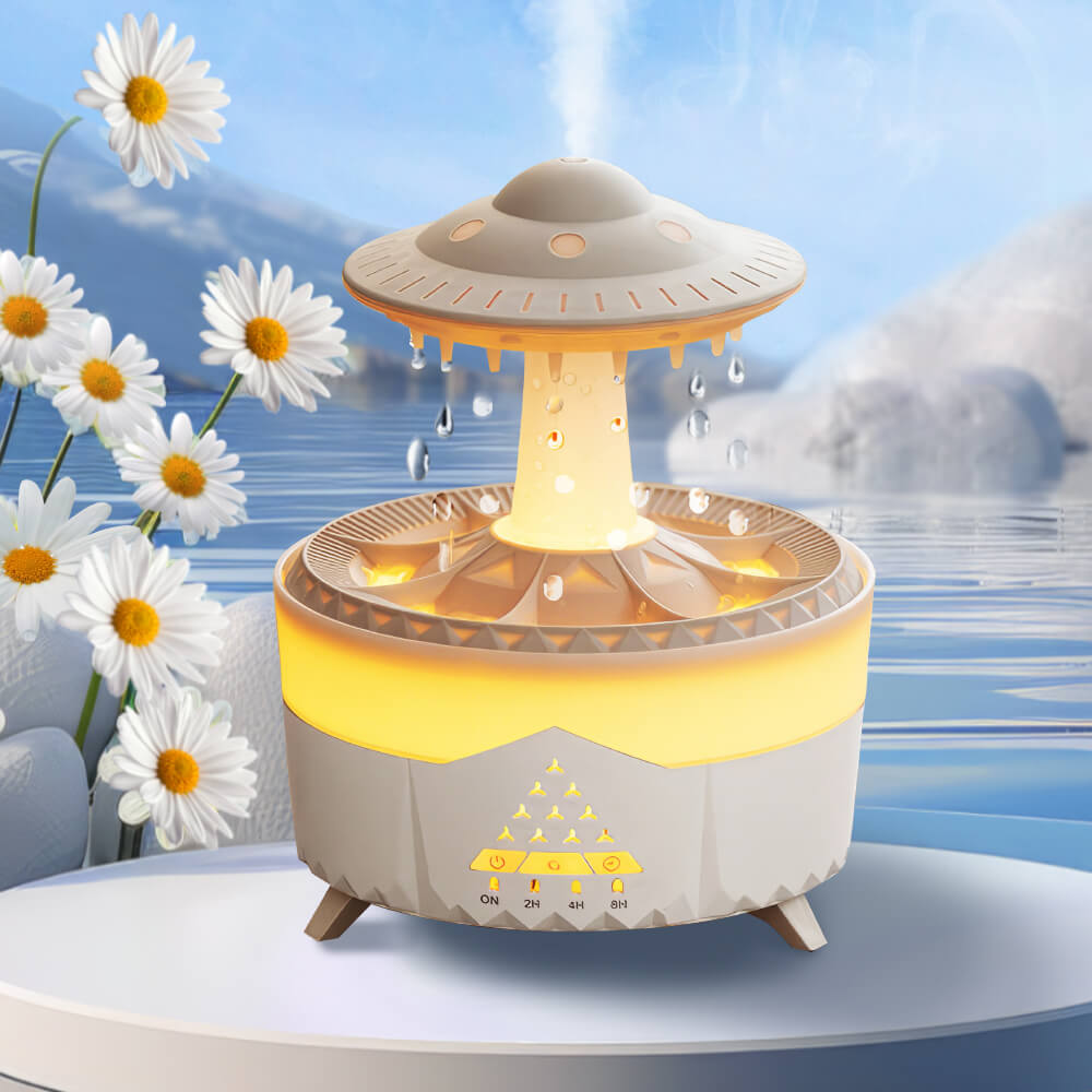 Bring refreshing moisture and gentle fragrance into your space with this raindrop-inspired ultrasonic humidifier. Its compact design provides fine mist without leaving surfaces damp, helping to ease dryness in the air. The built-in LED lights add a calming atmosphere, making it a great choice for bedrooms, offices, or living rooms.