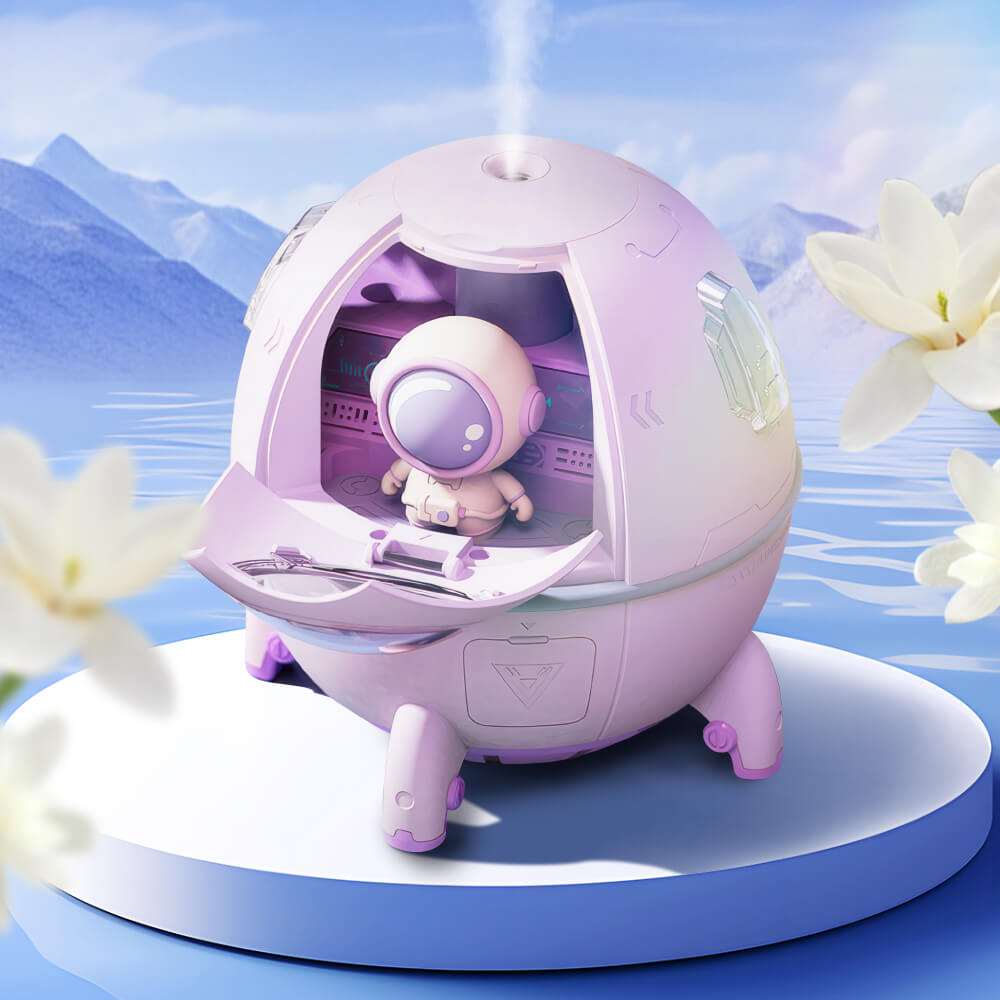 Space Capsule Cool Mist Humidifier with LED Light and Dual Spray Modes