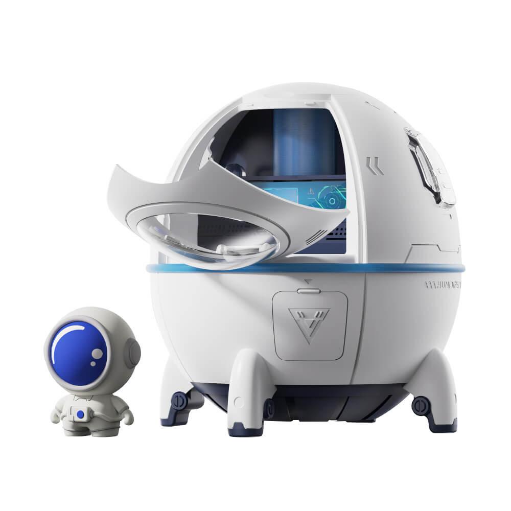 This compact ultrasonic humidifier features a unique space capsule design with soft LED lighting, adding both style and function to your bedroom, office, or workspace. With dual mist settings, quiet operation, and automatic shut-off, it offers convenient moisture for a comfortable environment.